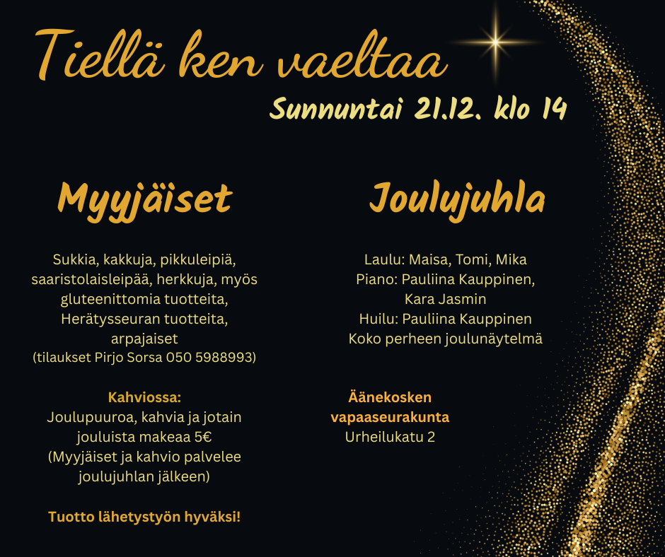 21.12. klo 14 Joulujuhla ja myyjäiset, erillinen mainos